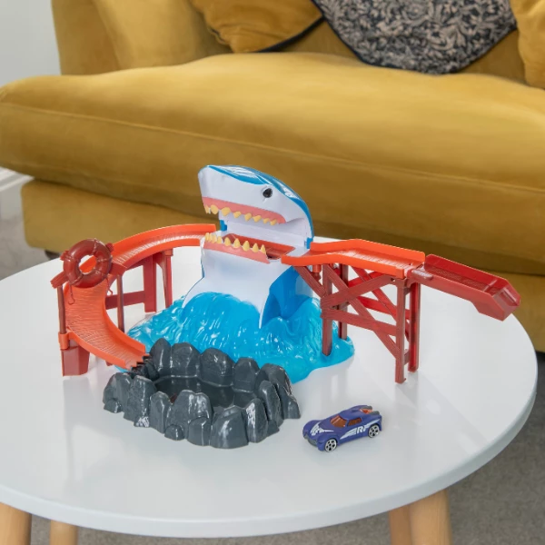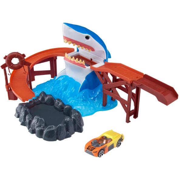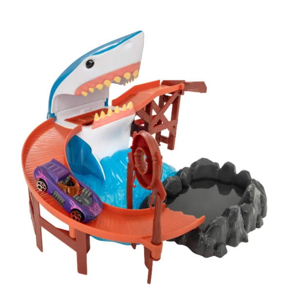 Acest set de joacă captivant, cu o pistă și un rechin uriaș, va fi cadoul ideal pentru micii aventurieri! Mașinuța își schimbă culoarea la contactul cu apa, făcând jocul și mai distractiv și variat. Copilul poate organiza curse și încerca să evite gura rechinului, adăugând emoție și suspans în timpul jocului.