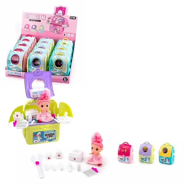 Acest set de joacă include 12 articole în miniatură și o păpușă înaltă de 2,5 inch, cu materiale medicale disponibile în trei culori diferite. Vine cu un rucsac la îndemână pentru a stoca toate articolele, facilitând transportul setului oriunde. Păpușile și accesoriile sunt versatile și potrivite pentru jocuri de povești în care puteți oferi asistență medicală și îngrijire păpușilor.