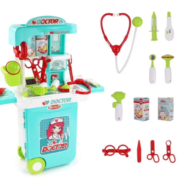 Setul de joc "Doctorul în valiză" este alegerea ideală pentru jocurile de rol, aducând multă bucurie copilului dumneavoastră. Valiza se transformă ușor într-un raft practic cu nișe și rafturi pentru depozitarea tuturor accesoriilor medicale. Setul include ochelari, ciocănel, termometru, stetoscop, otoscop și alte instrumente, permițând copilului să se simtă ca un adevărat doctor. Jocul ajută la dezvoltarea motricității fine, a abilităților de îngrijire și comunicare. Valiza colorată asigură transportul ușor și mobilitatea.