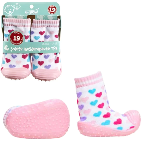 Șosetele cu inimioare antiderapante pentru copii, mărimea 19, combină confortul, siguranța și ușurința: