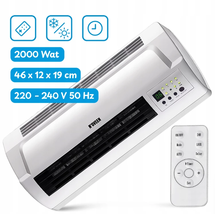 Suflanta de aer cald N’OVEEN HC2000 LED este soluția ideală pentru încălzirea rapidă și eficientă a încăperilor. Cu un design modern și compact, se montează ușor pe perete, deasupra ușilor, fiind perfectă atât pentru acasă, cât și pentru spații comerciale. Datorită puterii de 2000 W și a fluxului de aer rece/cald, oferă confort maxim în orice sezon.
