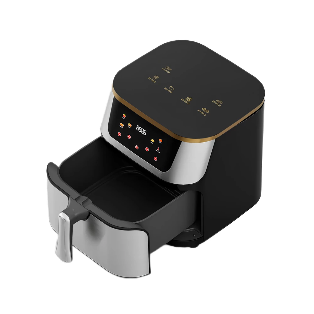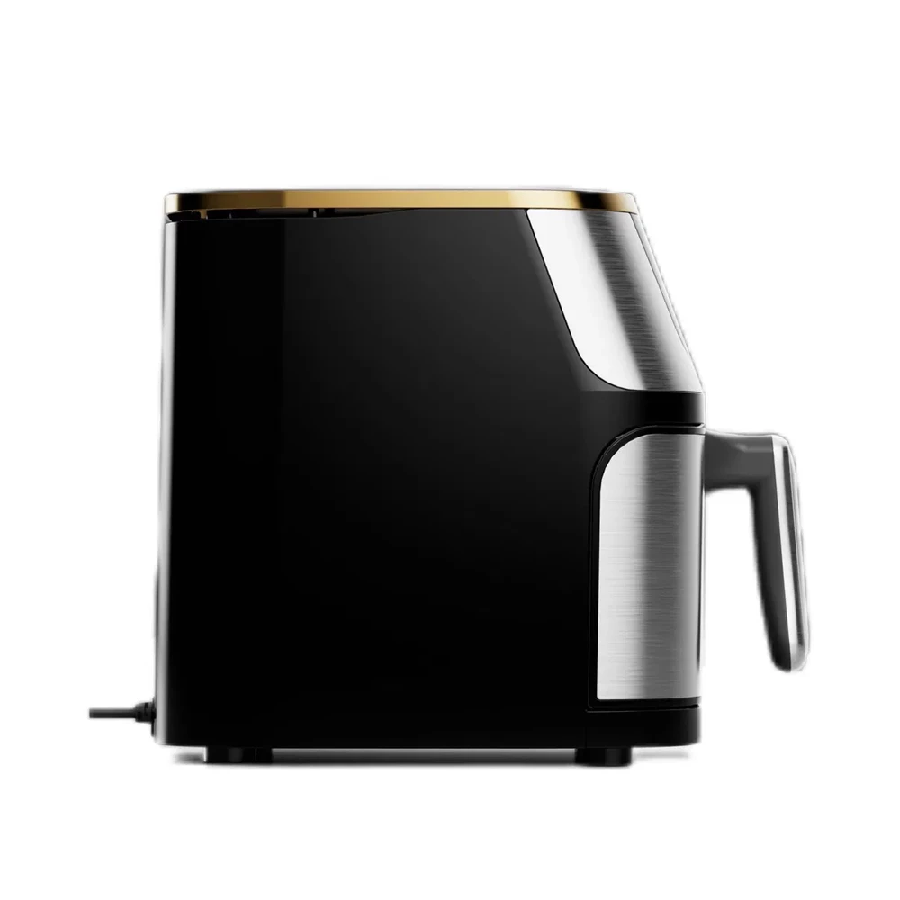 Friteuza cu aer cald se remarca printr-un design elegant din inox, care ii confera un aspect robust si profesional. Carcasa din otel inoxidabil este rezistenta la temperaturi ridicate si la uzura zilnica, fiind totodata usor de curatat. Partea frontala este dotata cu un panou digital intuitiv, prevazut cu afisaj LED si butoane tactile, ce permit selectarea rapida a functiilor si programelor presetate.