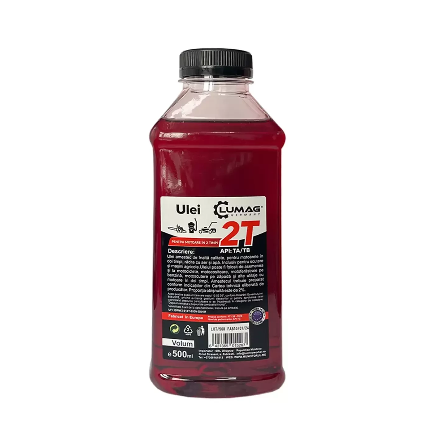 Ulei de înaltă calitate, fabricat în Europa, destinat pentru motoare în doi timpi cu aprindere prin scânteie. Se utilizează prin amestec direct în rezervorul de combustibil, asigurând o lubrifiere eficientă și o durată de viață mai mare a motorului. Compatibil cu motocoase, motofierăstraie, motociclete și alte utilaje similare.