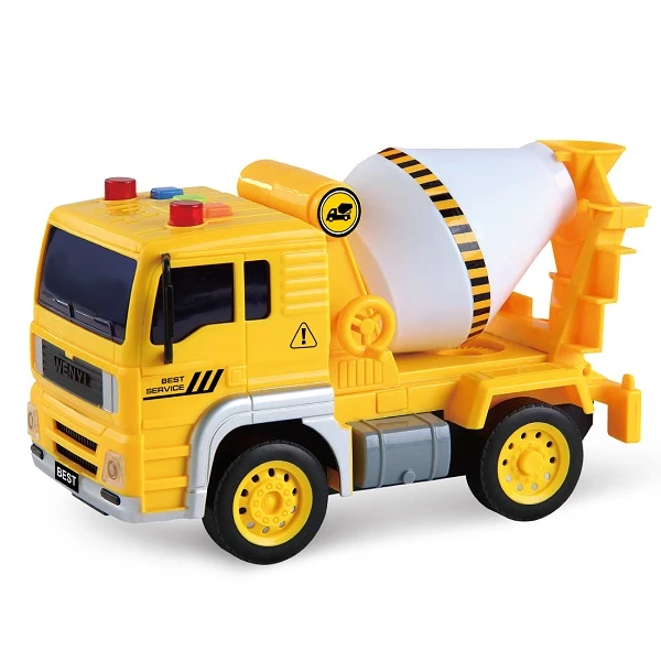 Mașina betonieră, cu sunete și lumini are urmatoarele caracteristici: emite sunete și lumini de atenționare, la fel ca o mașină adevarată din domeniul construcțiilor. Sunetele specifice pot fi acționate prin 4 butoane plasate deasupra cabinei. Roțile sunt de cauciuc. Fabricat din material plastic de înaltă calitate. Mașina este construită la o scara de 1 la 20. Mașinuța este dotată cu motor cu fricțiune, astfel, ea va fi împinsă puțin și datorită fricțiunii ea se va deplasa o mare distanță pe direcția înainte. Cu ajutorul ei, vei învăța să imiți viața pe șantier și vei descoperi ce înseamnă să construiești un oraș și îți vei dezvolta imaginația, îndemânarea și aptitudinile motrice.