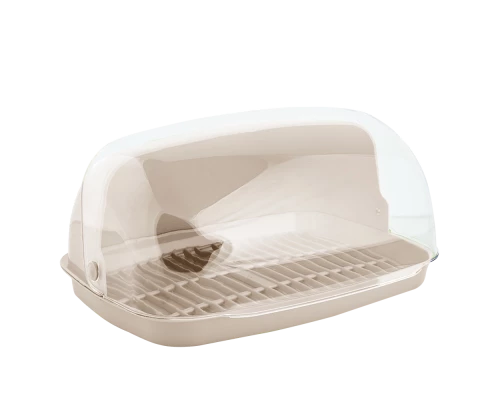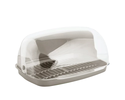 169049 Хлебница Aleana 32x25x17 смХлебница - это удобный элемент кухонного обихода. Хлебобулочные изделия дольше хранятся в закрытом пространстве, не черствеют. Хлебница оснащена прозрачной поворотной крышкой, что дает возможность видеть содержимое хлебницы. Классическая конструкция достаточно вместительная, чтобы хранить несколько булок хлеба одновременно. Материал изготовления - пищевой полипропилен, который имеет ряд плюсов:- не контактирует с продуктами;- безопасен для здоровья человека, не выделяет вредных веществ;- устойчив к воздействию влаги и УФ-лучей.Для организации циркуляции воздуха, хлебница укомплектована специальной решеткой. Материал - PP PS