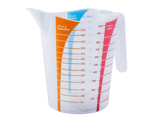 169062 Пластиковый мерный стакан Aleana 1.0лМерная кружка - это аксессуар, необходимый каждой хозяйке. С ее помощью можно точно измерить количество любых жидких, сыпучих и вязких продуктов. Мерная кружка имеет традиционную круглую форму, удобную тонкую ручку и заостренный носик. Пользоваться мерной кружкой легко и комфортно. Изготовлена мерная кружка из качественного пищевого пластика. Этот легкий и простой в уходе материал отличается износостойкостью, прочностью и экологичностью. Подходит для м ...