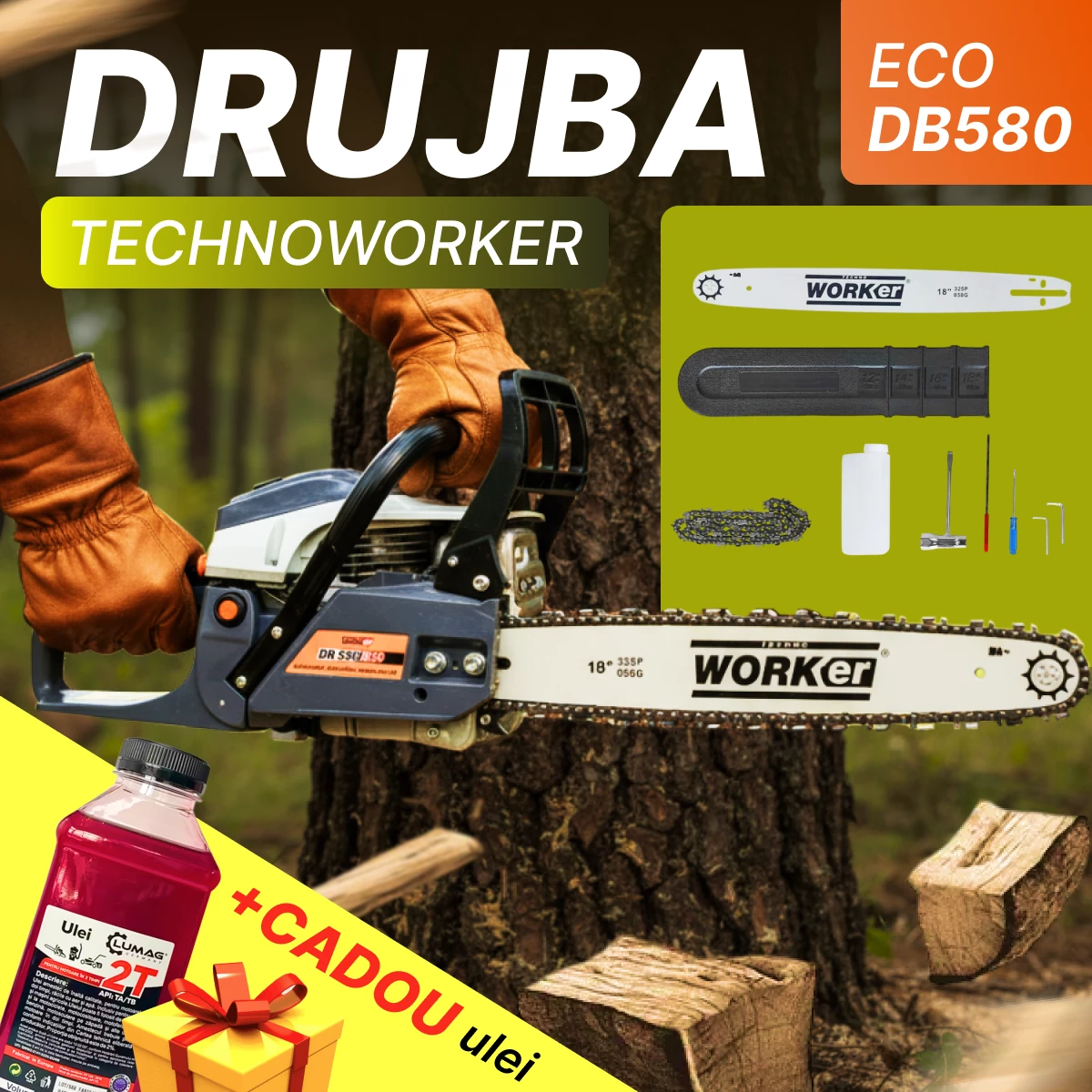 БЕНЗОПИЛА TECHNOWORKER ECO + МАСЛА В ПОДАРОК (DB580)