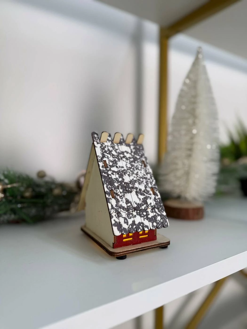 Добавьте немного волшебства в свои праздники с этим элегантным деревянным декоративным домиком, оснащённым тёплой подсветкой. Детализированный дизайн, вдохновлённый волшебной атмосферой Рождества, включает изображение Деда Мороза рядом с ёлочкой.