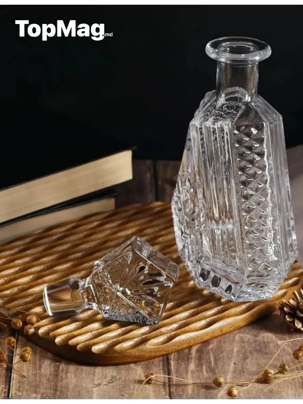 Добавьте изысканности подаче напитков с этой оригинальной стеклянной бутылкой. Идеально подходит для хранения и подачи виски, коньяка, вина или других алкогольных напитков, придавая особое очарование любой сервировке.