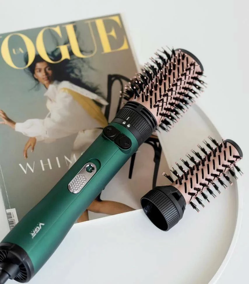 Фен с вращающейся щёткой — это профессиональное устройство 2-в-1, предназначенное для быстрой сушки и идеальной укладки волос.