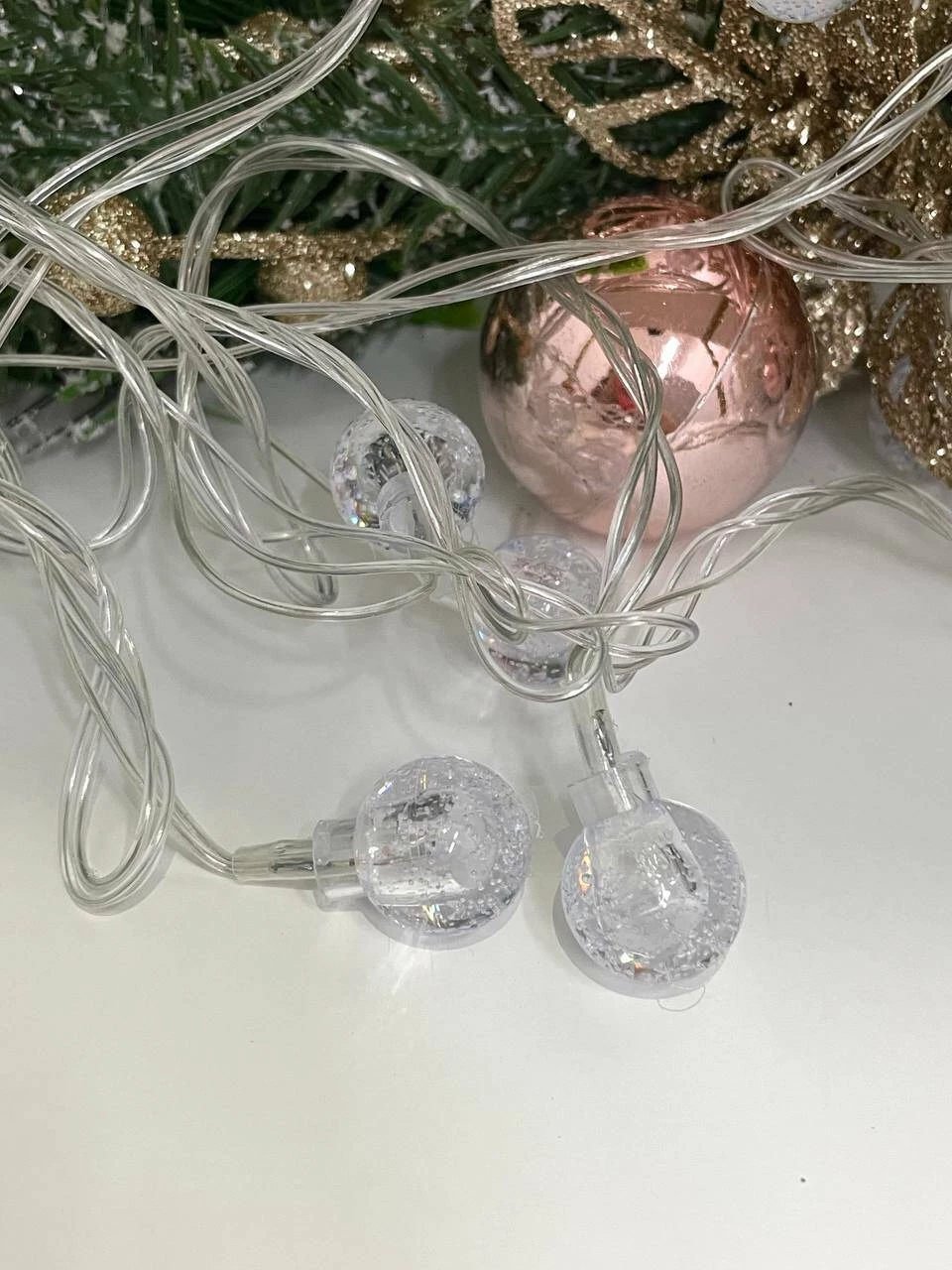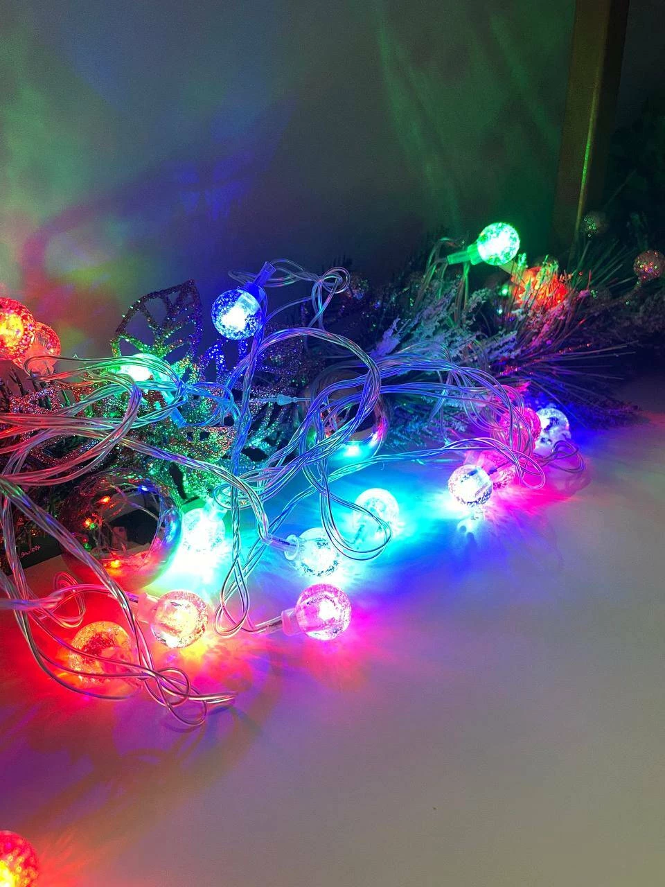 Эта яркая гирлянда длиной 3,8 метра станет главным украшением вашего дома! Прозрачные шарики с фактурной поверхностью красиво рассеивают свет, создавая уютное разноцветное сияние. Идеально подходит для оформления ёлки, окон, полок или праздничного интерьера.