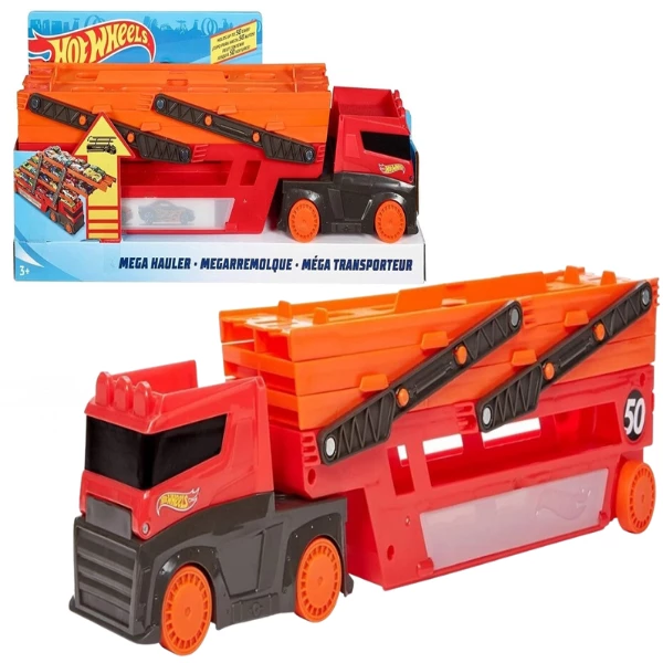 В задней части грузовика есть рампа, которая опускается для соединения грузовика с другими наборами Hot Wheels. Кабина транспортера открывается для парковки еще двух машинок, а прозрачная боковая панель откидывается для удобного и компактного хранения любимых машинок. На всех уровнях, а также в задней части грузовика есть специальные крепления для присоединения грузовика к другим наборам Hot Wheels.