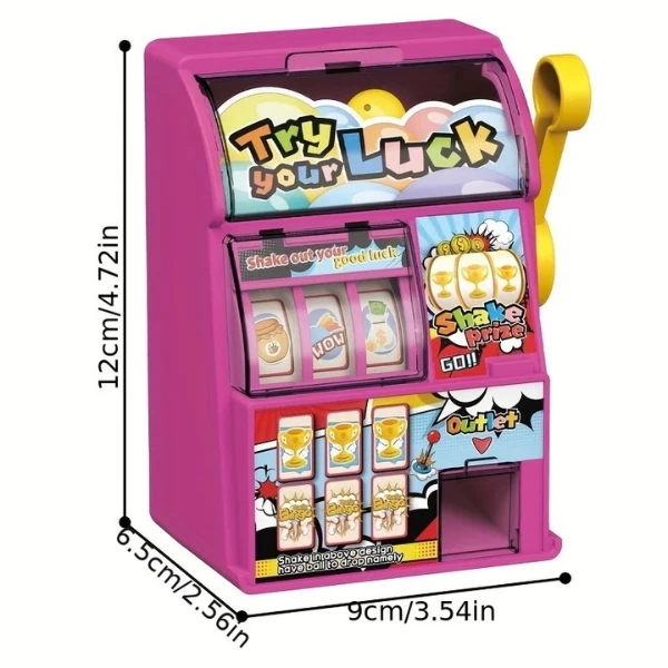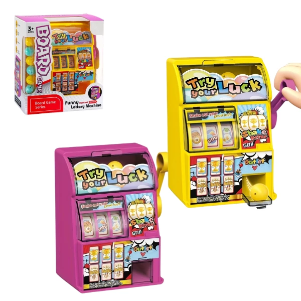 Познакомьтесь с мини-игровым автоматом – идеальной игрушкой для детей! Тяните рычаг, крутите колесо и попытайтесь собрать одинаковый узор, чтобы получить приз. Для ещё большего удовольствия можно положить внутрь конфеты или маленькие сюрпризы.