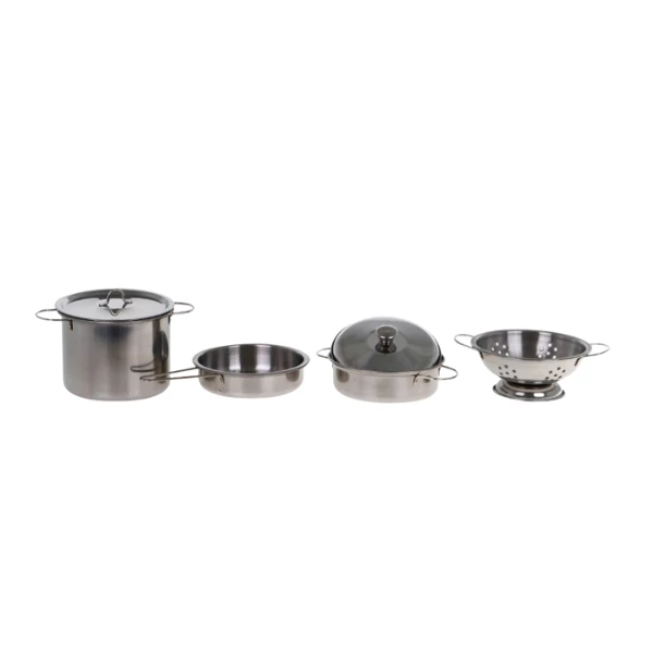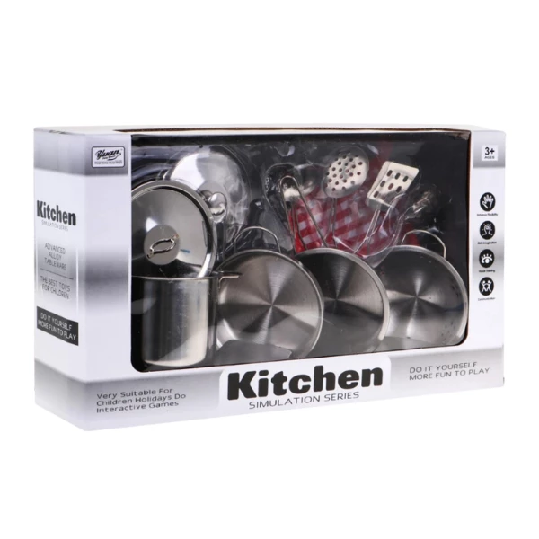 Этот набор кухонной утвари из 11 предметов позволит вашему ребенку создать собственную мини-кухню и весело провести время, играя в повара. В комплект входят различные кухонные принадлежности, включая кастрюли, сковороды, миски и набор столовых приборов, что делает игру реалистичной и увлекательной.