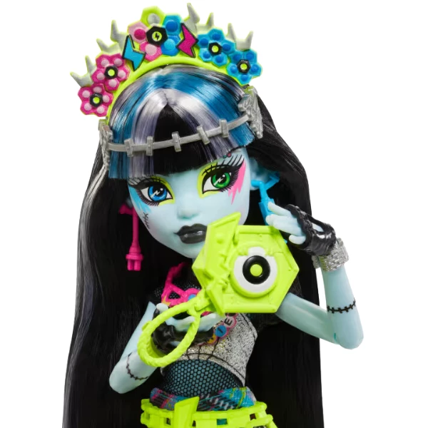 Кукла Monster High Франки Штейн получила билет на Monster Fest — самый крутой музыкальный фестиваль! С ослепительным образом и электризующими аксессуарами, она не может дождаться, чтобы поесть, потанцевать и быть страшной!