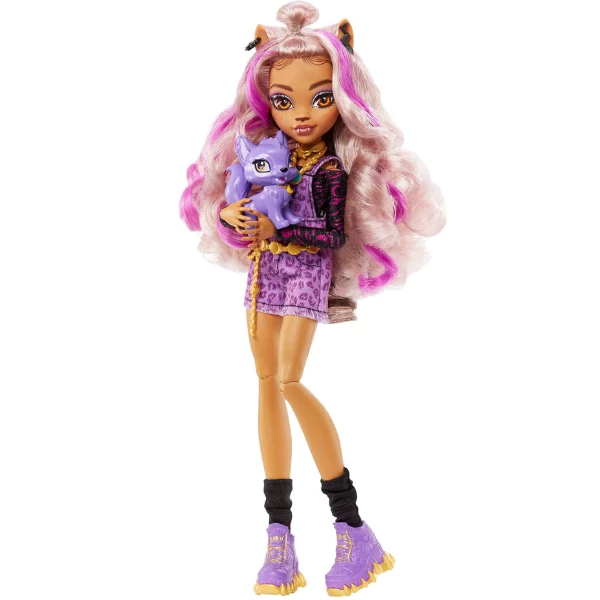 Кукла Clawdeen Wolf гуляет по коридорам школы Monster High в невероятном наряде: в джемпере с животным принтом и топом с длинным ...