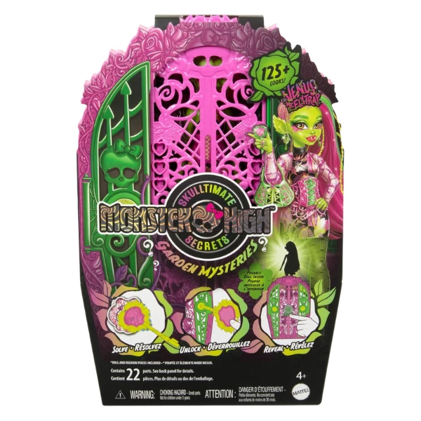 Представляем набор Monster High Skulltimate Secrets: Garden Mysteries с куклой Венерой МакФлайтрап. Погрузитесь в мир загадок и моды вместе с этой уникальной куклой и множеством аксессуаров.