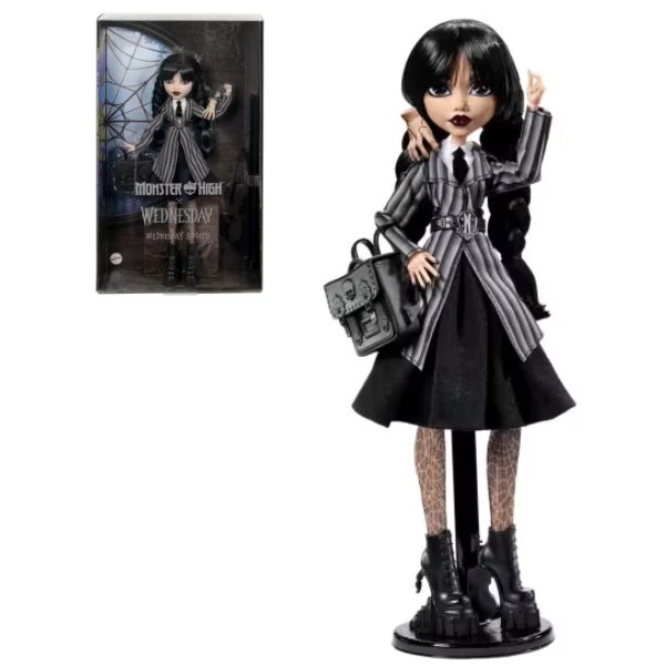 Создатели Monster High и сериала «Wednesday» объединили усилия, чтобы представить уникальную коллекционную куклу, вдохновленную знаменитым шоу! Эта стильная и загадочная Уэнсдэй Аддамс – идеальное воплощение готической элегантности.