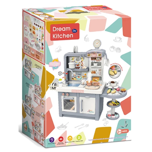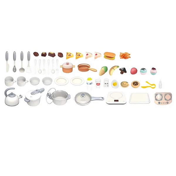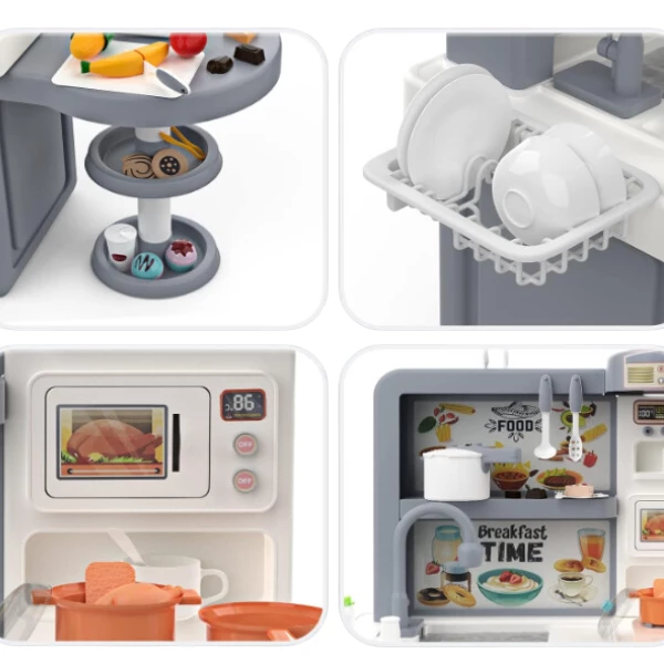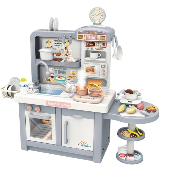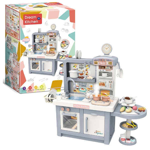 Игровой набор "Детская кухня" — это полный комплект для маленьких поваров, который включает в себя 48 аксессуаров, такие как плита с паром, игровая раковина с проточной водой, духовка, микроволновая печь и множество кухонных принадлежностей. Этот набор не только привлекает детей своими световыми и звуковыми эффектами, но и позволяет им развивать навыки через игру.