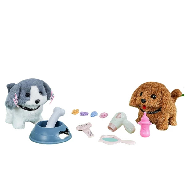 Дополнительные аксессуары: в комплект входят косточка, миска, фен и другие предметы для ухода за щенком, что позволяет разнообразить игровой процесс.