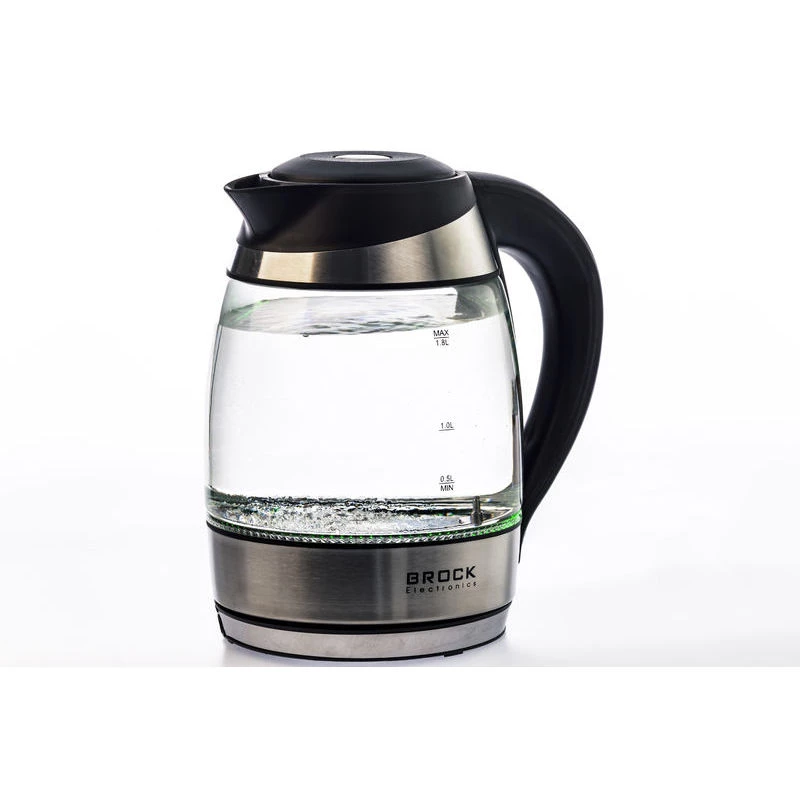 Kettle BROCK WK 2106 LL, Glass Black with LED light and temperature controller 2200W, 1.8L, The kettle will heat the water up to 60°C, 70°C, 80°C and