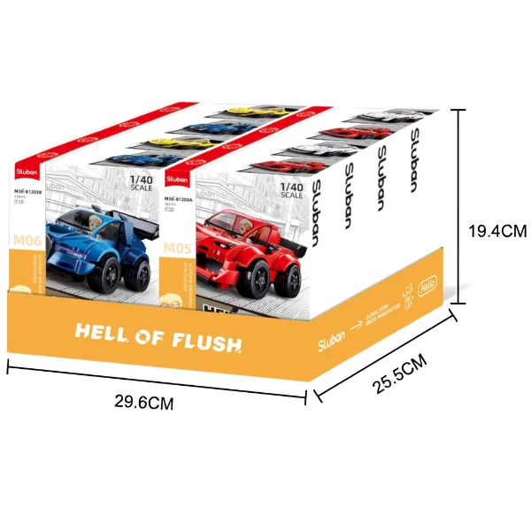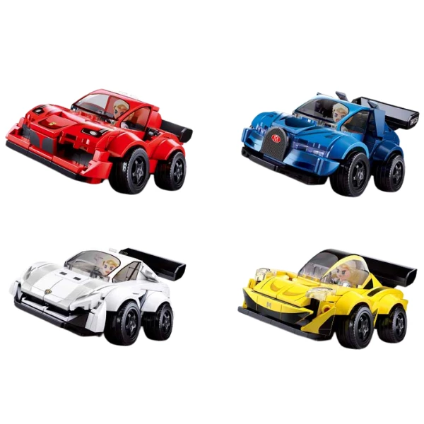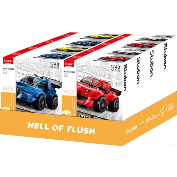 Конструктор “Гоночный суперкар” из серии Hell of Flush от Sluban представлен в ассортименте из 4 моделей, шкала 1:40. Каждый комплект представляет собой интересную и уникальную модель гоночного автомобиля.