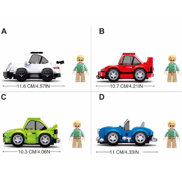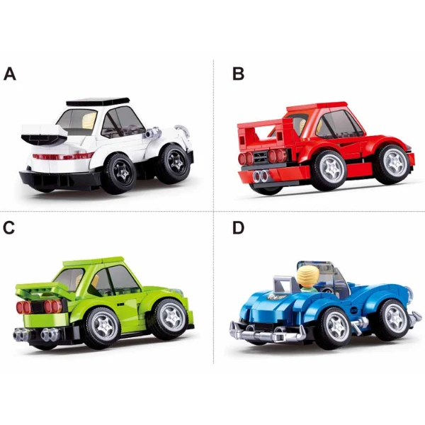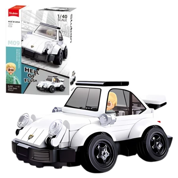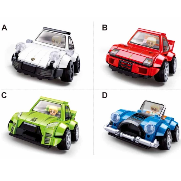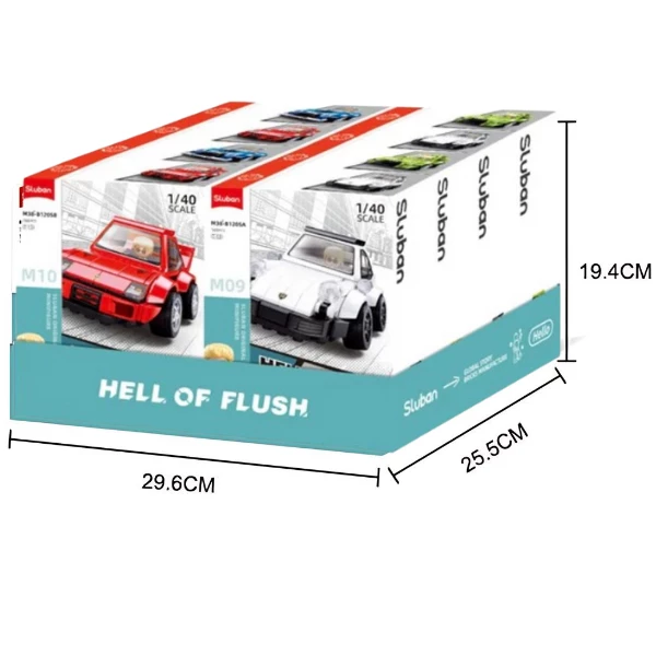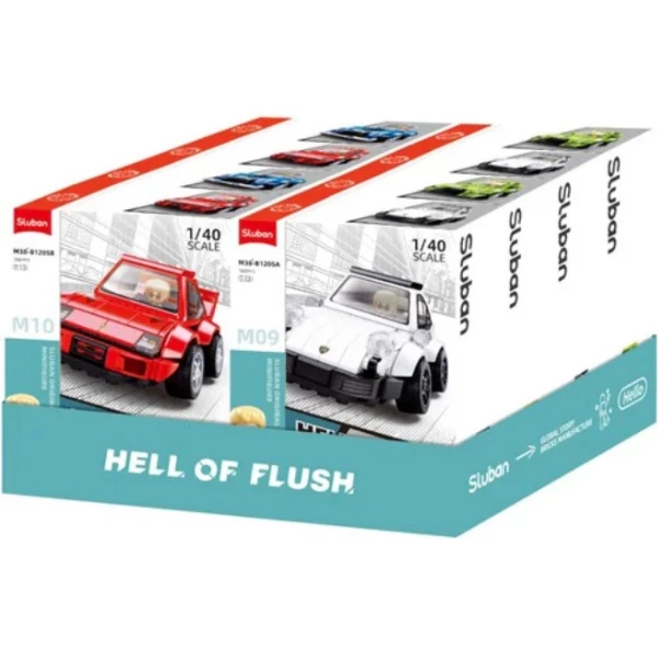 Конструктор “Городской автомобиль” из серии Hell of Flush от Sluban представлен в ассортименте из 4 моделей, шкала 1:40. Каждый комплект представляет собой интересную и уникальную модель городского автомобиля с фигуркой водителя.