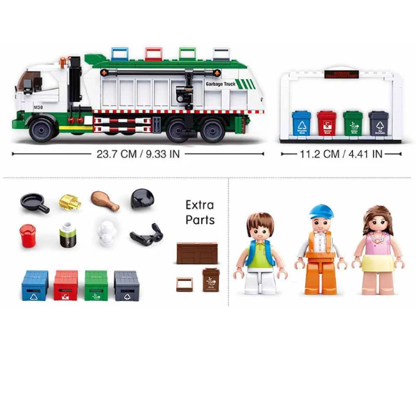 Конструктор Sluban “Служба раздельного сбора мусора” позволит собственными руками собрать модель городской техники. В комплекте есть 3 минифигурки. Детали изготовленных из высококачественной пластмассы, все элементы конструктора надёжно соединяются между собой и разбираются без особого труда. Из этого игрового набора ребенок сможет собрать снегоуборочную машину с краном и ковшом. Набор совместим с моделями конструкторов мировых производителей, в том числе с Лего.