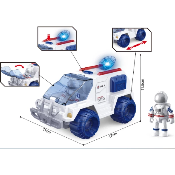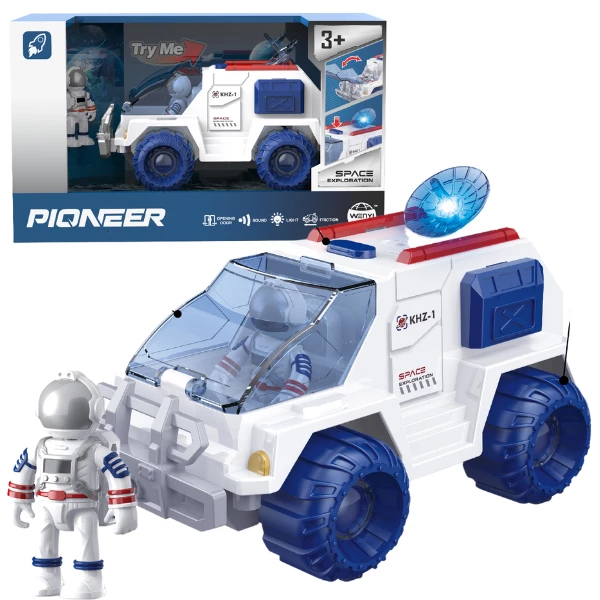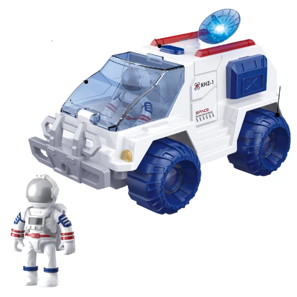 Этот игровой набор включает космический вездеход и фигурку астронавта. Игрушка создана для детей от 3 лет и выполнена в стиле научной фантастики. Вездеход оснащен звуковыми и световыми эффектами, а также механизмом трения для движения.