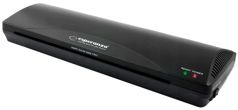 Laminator Esperanza AEON EFL003 A3, Power consumption: 265W, Film thickness for hot lamination: 80-125 microns, Maximum document dimensions: 297 x 420 mm (A3 format), Maximum warming-up time: approx. 5 min. Lamination speed: 250 mm per minute, Maximal sheet width: 330 mm, Hot and cold lamination, Maximum thickness of laminated sheet: 0.6mm, LED: Power/Ready, Features: COLD/OFF/HOT, Number of rolls: 2, Lamination of photos, Material: high-quality plastic (ABS), Cable length: about 154 cm, Protection against overheating, Unit dimensions: 430 x 140 x 65 [mm], Included: 5 x A3 foils