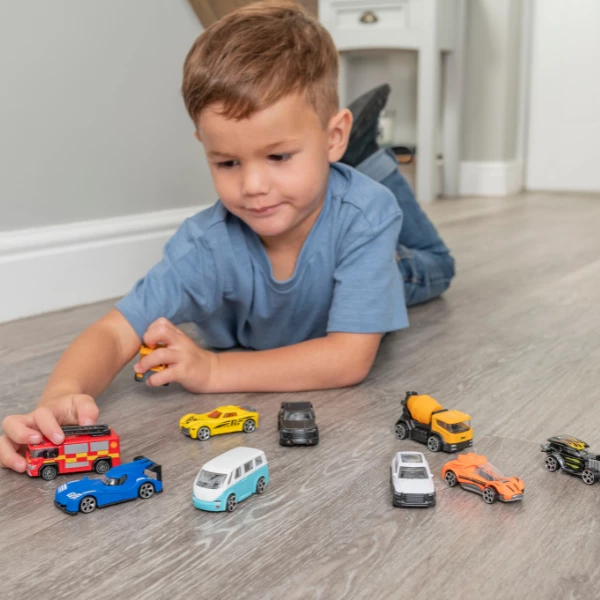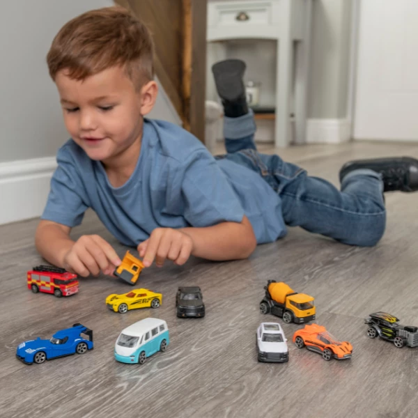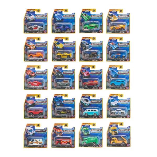 Ассортимент из 24 моделей, включая спортивные машины, внедорожники, грузовики, городские автомобили, строительную технику и машины спецслужб.