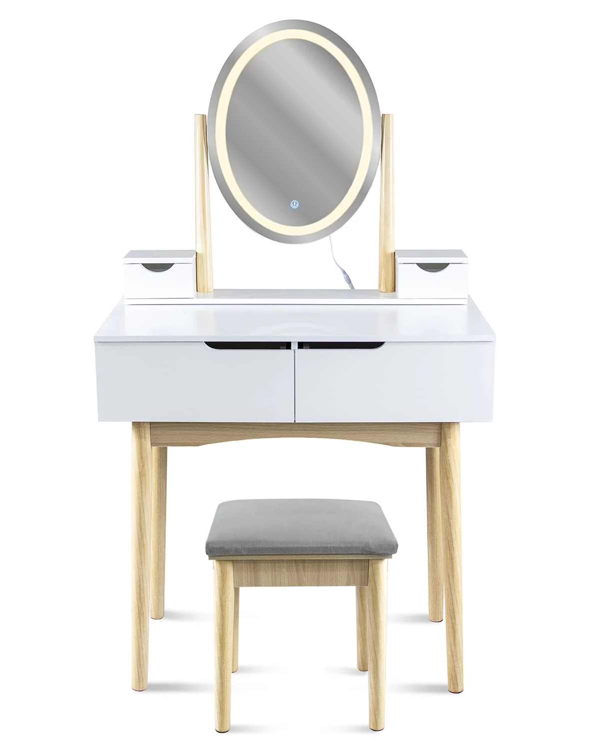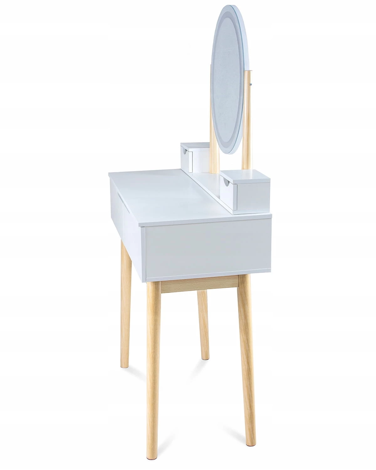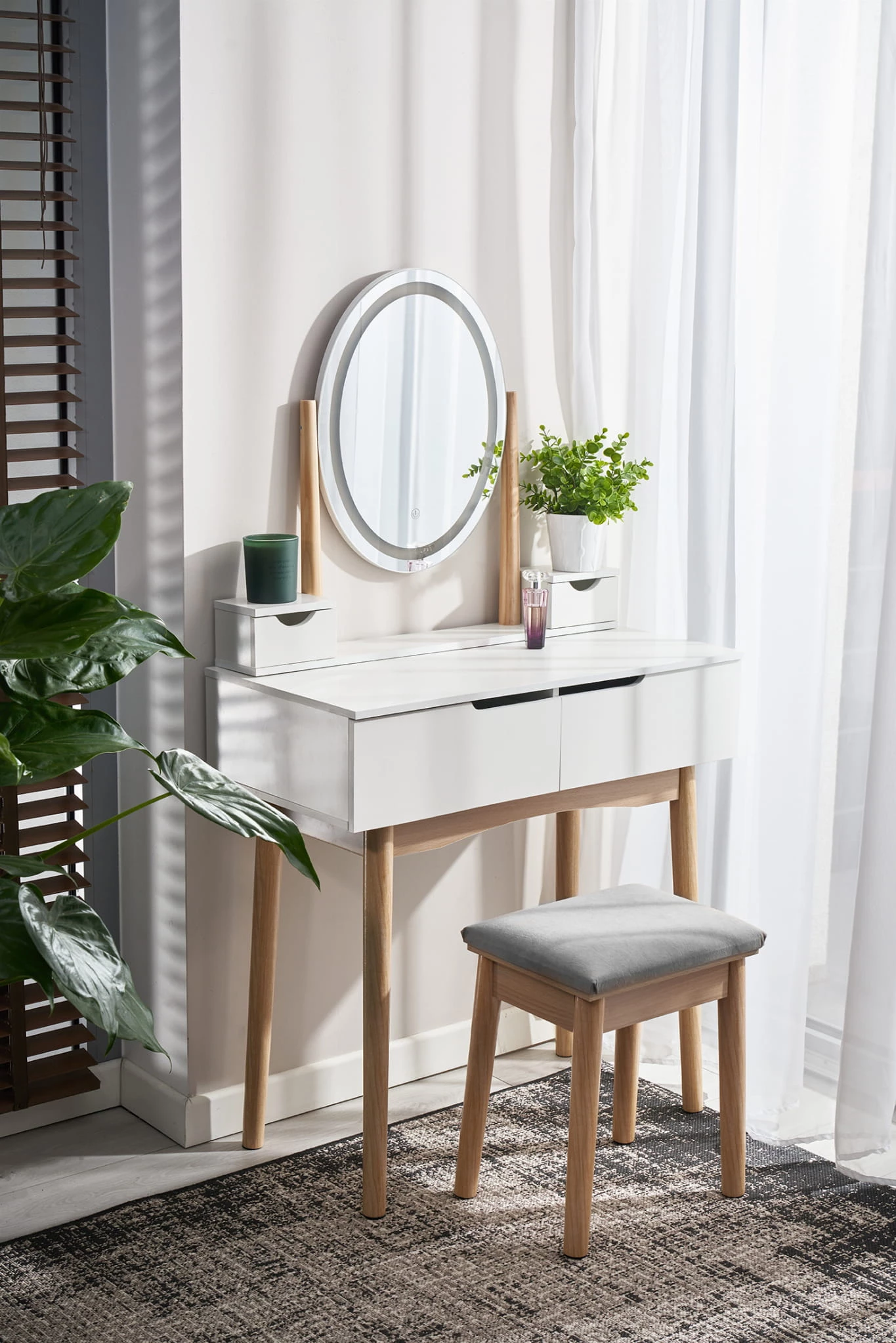 Masa de toaleta cu taburet și oglindă ovala cu lumina LED, JUMI, 140x80x40cm, Alb CM-920576
