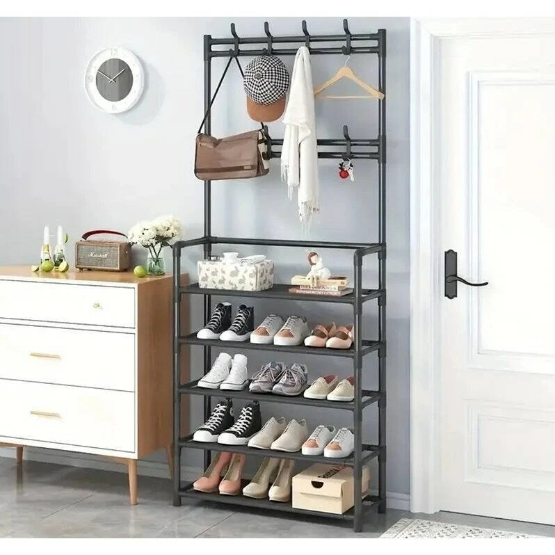 Компактный дизайн с пятью уровнями хранения позволяет использовать её в спальнях, прихожих, магазинах или торговых помещениях.
