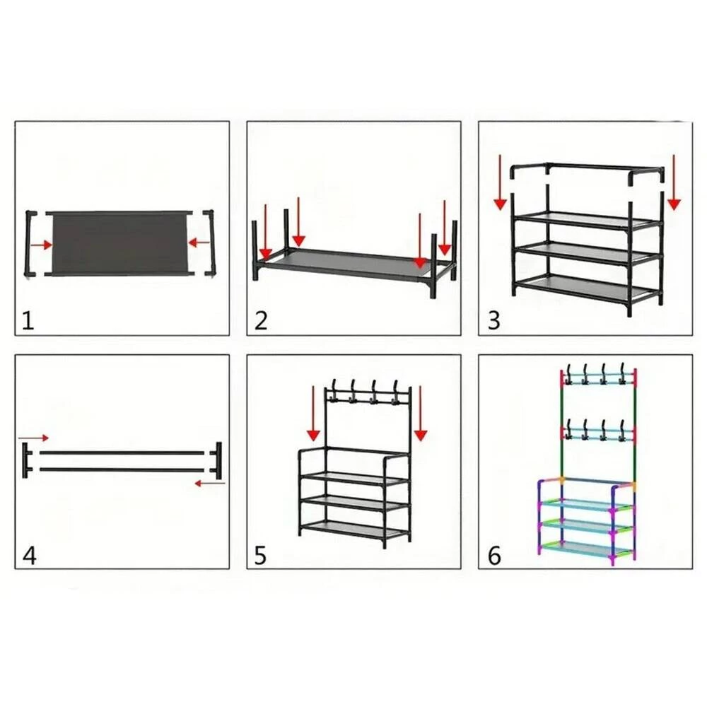 Конструкция легко собирается без специальных инструментов, а двойные боковые крючки обеспечивают дополнительное место для сумок, шарфов, шляп и других аксессуаров.