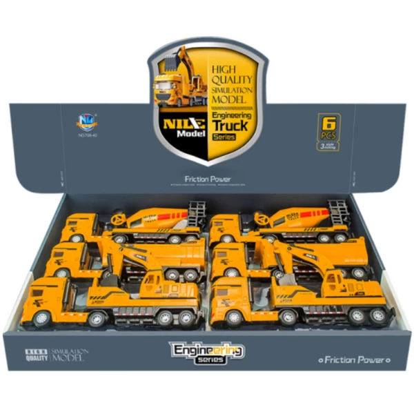 Этот набор включает 6 инженерных машинок в 3 разных стилях, оснащённых инерционным механизмом и непрозрачными колёсами, выполненными из прочного пластика. Каждая машинка представляет собой миниатюрную копию спецтехники, таких как самосвалы, краны, экскаваторы и другие строительные машины. Инерционный механизм позволяет машинкам двигаться вперёд после небольшого толчка.