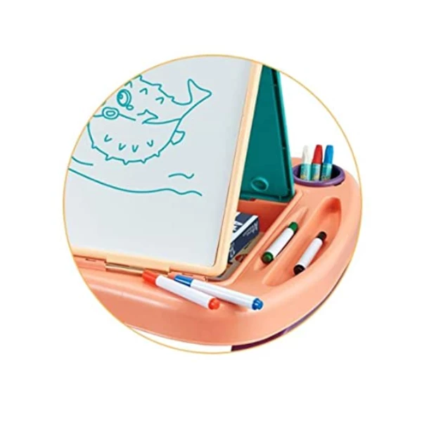 Набор для рисования 2в1 – это идеальный аксессуар как для маленьких художников, так и для родителей, стремящихся развивать творческие способности своих детей. Мольберт, выполненный в яркой оранжевой подставке, имеет компактные размеры и легко впишется даже в небольшое пространство. На подставке предусмотрены удобные выемки для хранения мелков, маркеров и других необходимых аксессуаров.
