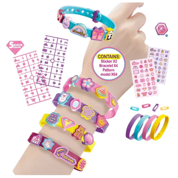 Создавай яркие и уникальные браслеты с этим набором DIY «Bracelets»! В комплект входят 4 разноцветных браслета, 64 декоративных элемента для вставки и 2 листа с наклейками, чтобы придать каждому браслету индивидуальный стиль.