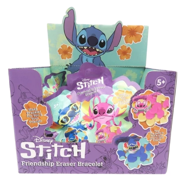 Lilo & Stitch Браслет дружбы-ластик — весёлые браслеты дружбы, которые можно создавать самому! Используй резиновые бусинки, чтобы придумать оригинальные украшения. В дисплее — 12 блистеров, каждый содержит 2 браслета, которые ты можешь оформить по своему вкусу.