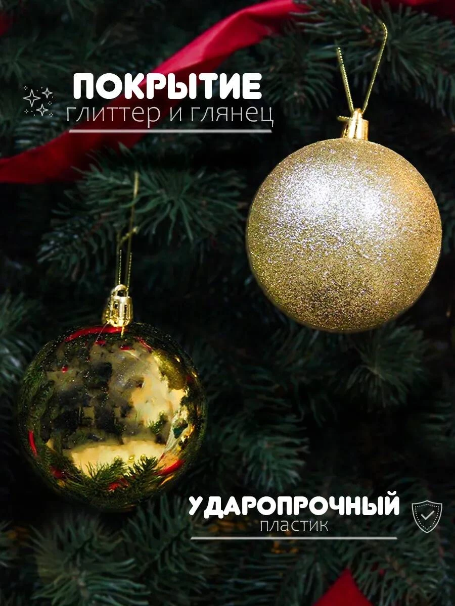 Набор новогодних шаров для украшения елки и интерьера. Игрушки выполнены из прочного ударостойкого пластика и сочетают два вида покрытия: глянец и глиттер, создавая яркий праздничный эффект.