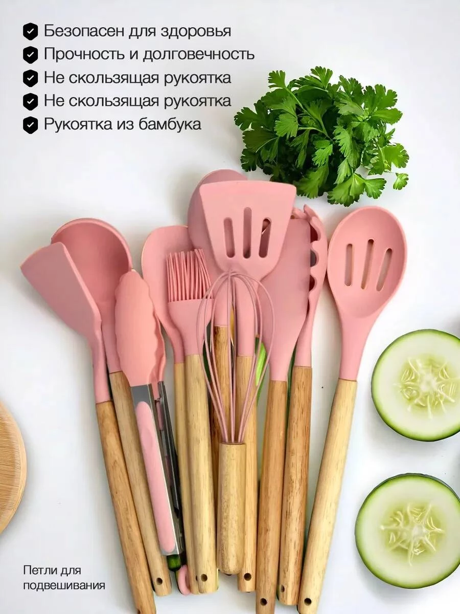 Наш набор кухонных принадлежностей разработан с прочными насадками из высококачественного силикона, которые прочно прикреплены к ручкам из натуральной древесины акации твёрдых пород. Эти инструменты прослужат вам долгие годы. Набор изготовлен из нетоксичных материалов, не содержит BPA, одобрен FDA и всегда выглядит и ощущается так, как вы ожидаете.