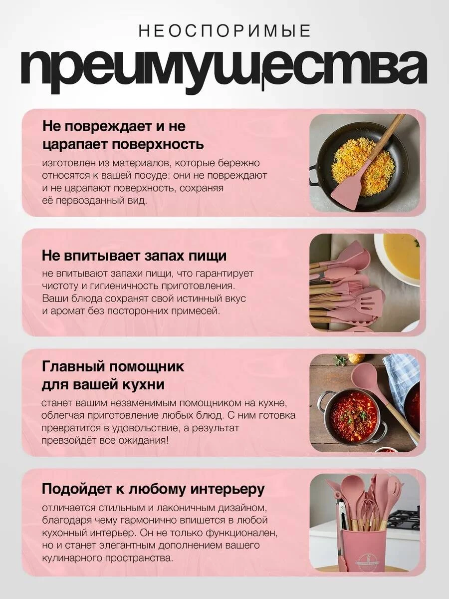 Лопатка, кисточка с острой лопаткой, круглая лопатка, поварешка, прямая лопатка, ложка, щипцы, вилка для пасты — идеально подходят для любых блюд и способов приготовления.
