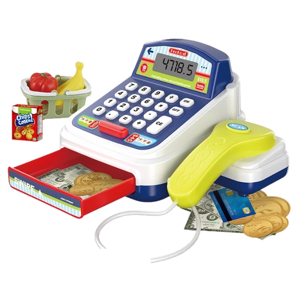 Игровой кассовый аппарат с корзиной продуктов — это увлекательный набор, который поможет ребёнку почувствовать себя настоящим продавцом! Во время игры дети могут сканировать товары, считать стоимость покупок, принимать оплату и пользоваться настоящим калькулятором. Световые и звуковые эффекты делают игру максимально реалистичной и интересной.