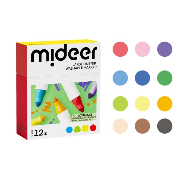 Этот набор маркеров с тонким наконечником создан для удобного использования и разнообразных техник рисования. Он идеально подходит для маленьких художников, которые учатся выражать себя через творчество. Маркеры позволяют рисовать как тонкие, так и широкие линии, сочетая универсальность с безопасностью и лёгкостью очистки.