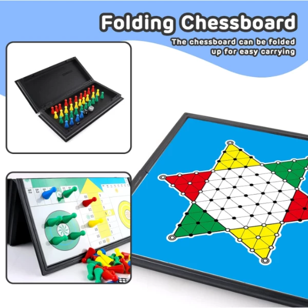 Описание: Настольная игра "Классические игры 3 в 1" — идеальный выбор для семейного вечера! Составляйте стратегию, развивайте логическое мышление и наслаждайтесь времяпрепровождением с близкими. Этот комплект включает три популярных игры: Лото, Змейки и Лестницы, а также Китайские Шашки. Портативная складная доска размером 9.85 дюймов удобно складывается и легко помещается в сумку, что делает её отличным спутником в поездках.