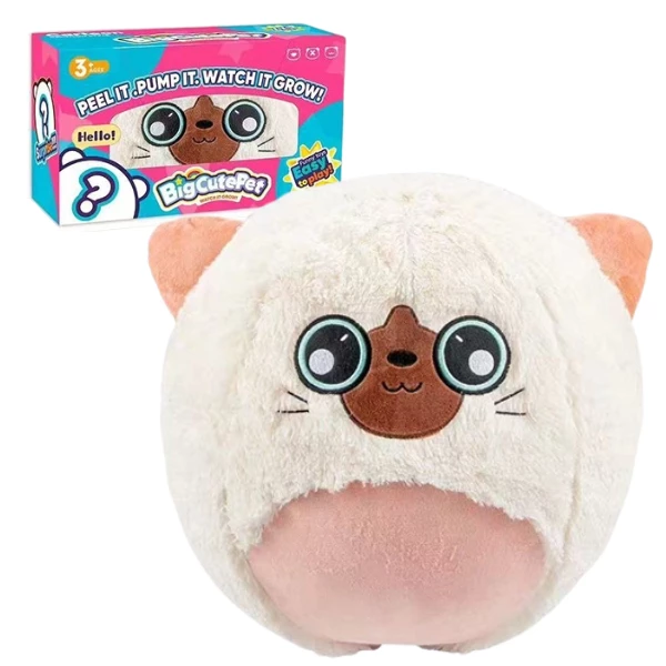 Откройте для ребёнка волшебный мир с плюшевым мягким мячом Котик! Снимите защитную плёнку, надуйте игрушку с помощью насоса (входит в комплект) и наблюдайте, как помпон-лабубу становится большим и невероятно пушистым.