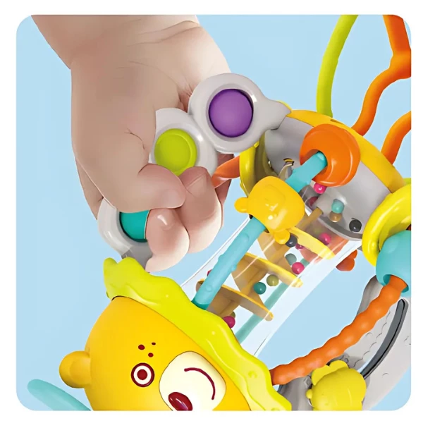 Развивающая игрушка, созданная для малышей от 6 месяцев, станет верным помощником в развитии моторики и сенсорных навыков.