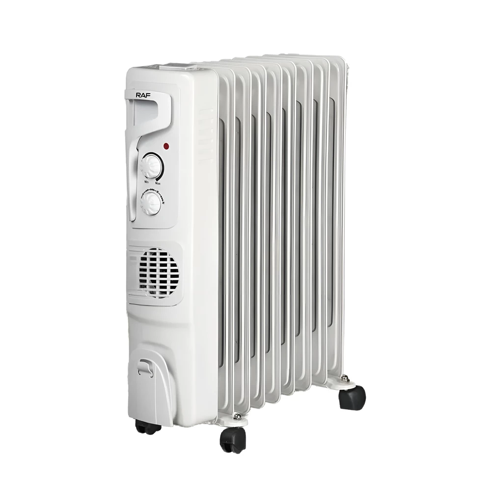Raf R.0929W utilizeaza tehnologia traditionala a radiatorului cu ulei, care pastreaza caldura chiar si dupa oprirea aparatului. Ventilatorul incorporat accelereaza circulatia aerului cald, oferind o incalzire rapida si uniforma, sporind confortul in orice camera.