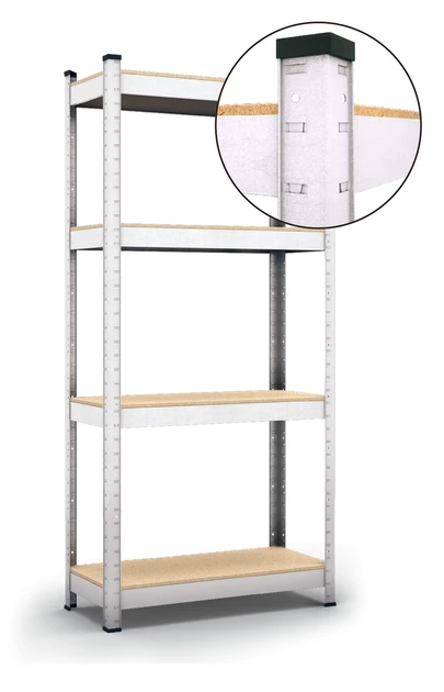 Raft metalic de depozitare Nex Budget 1600x800x300 mm, 4 rafturi MDF, galvanizat