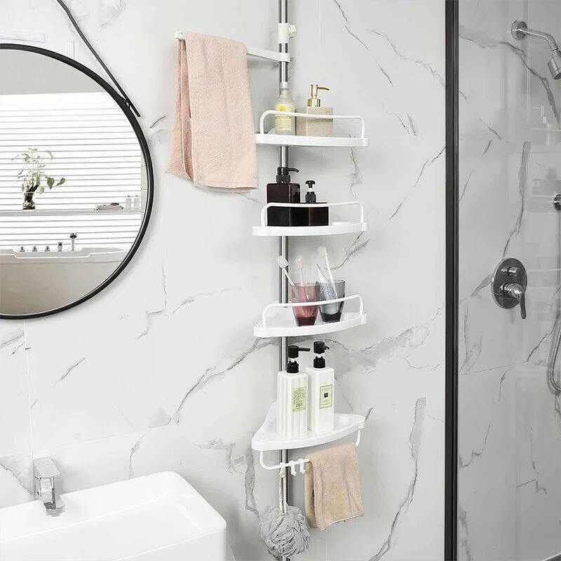 Телескопическая угловая полка — это практичное и элегантное решение для организации пространства в ванной комнате, на кухне или балконе.