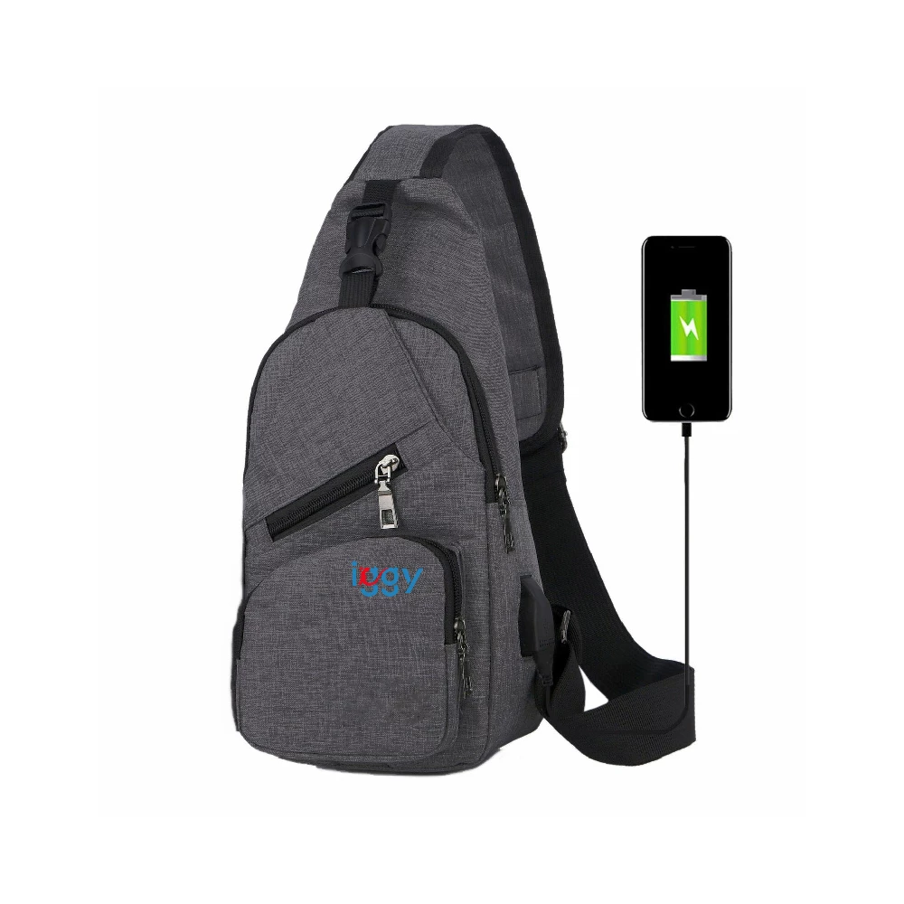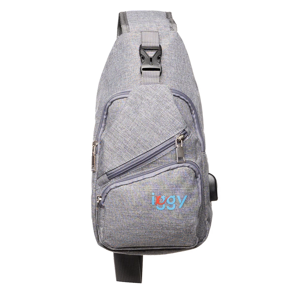 Rucsac Sling Iggy, polyester,1 bretea, 1 compartiment principal, 2 compartimente frontale, 32x16x6.9cm, mufa USB incarcare+cablu, gri,"IGSL-SLING-GY"